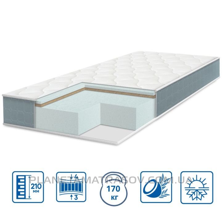Эта модель матраса имеет две разные стороны жесткости и подойдет для тех, кто ищет более жесткий матрас с кокосовой койрой. Этот качественный и долговечный матрас позволяет своему владельцу выбрать наиболее комфортную сторону для сна, и минимизирует возможность неправильного подбора жесткости матраса. Ведь всегда у вас будет возможность перевернуть матрас на более удобную сторону. Матрас имеет современный привлекательный вид и выполнен в чехле из высококачественной трикотажной ткани. Наполнение состоит из монолитной основы из эластичной пены высокой плотности, производимой на мощных и ведущих отраслевых предприятиях Европы, также с одной стороны присутствует латексированная кокосовая койра для добавления жесткости стороне, на которой она используется.