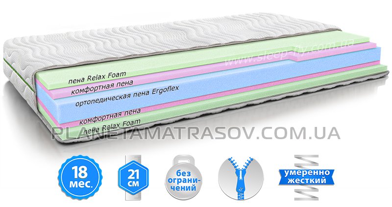 - Тип пружинного блоку: ортопедична піна Ergoflex