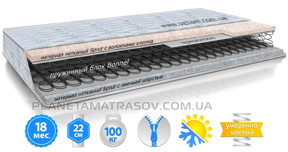 - Тип матраца: пружинний