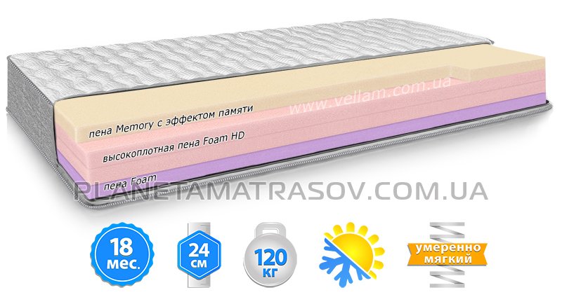 - Наповнювач: Memory Foam, наповнювачем «Sprut», ортопедична піна, Memory