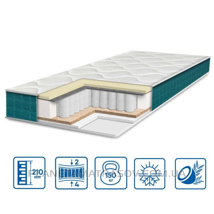 Ця модель підійде для тих, хто шукає якісний матрац із незалежними пружинами. Матрац має різну жорсткість з обох боків. Чохол виконаний із трикотажної тканини з об'ємним стеганням. Внутрішнє наповнення складається з посиленого блоку "Pocket spring", посилений єврокаркас, термоповсть, піни «МЕМОРІ» та кокоса з натуральним латексом. Незалежні один від одного пружини забезпечують точкову підтримку тіла та добре підтримують хребет.
