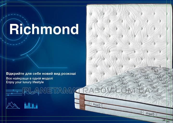 Зробіть крок до кращого сну та розкоші у Вашій спальні. Відкрийте для себе новий рівень комфорту з матрацом Richmond (Річмонд). Ви заслуговуєте тільки на краще.