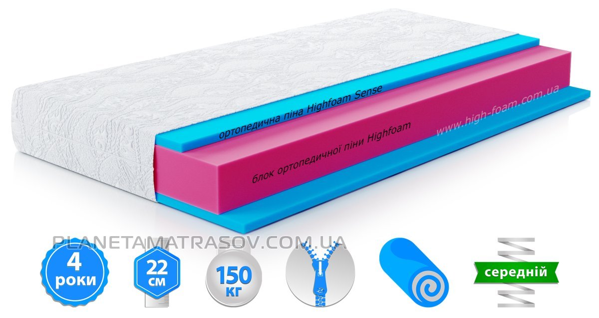 Ортопедична піна Highfoam Sense максимально повторює фізико-механічні властивості натурального латексу, що дає можливість зберегти максимально правильне положення хребта.