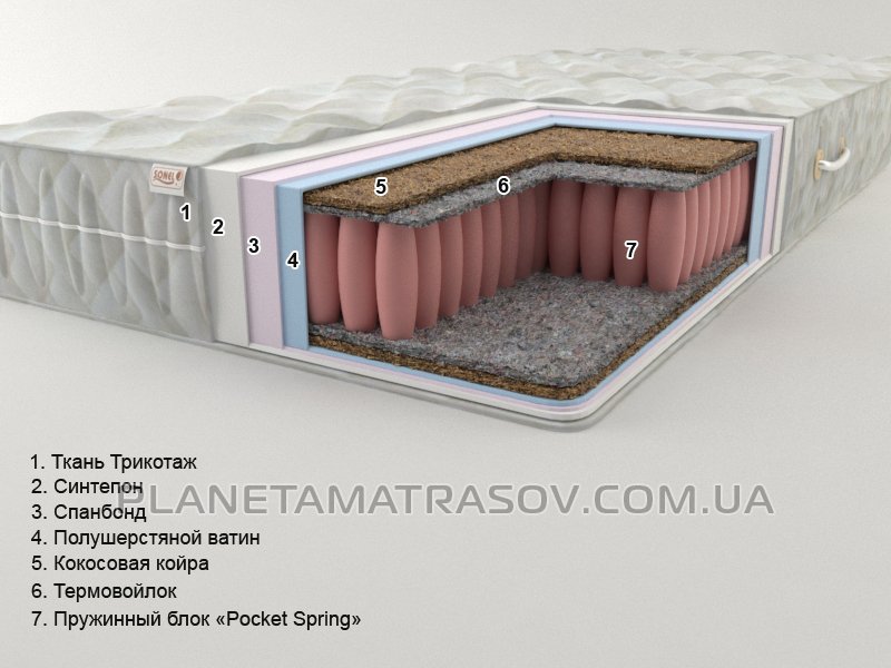 Жорсткий матрац на основі пружинного блоку «Pocket Spring», має чітко виражений ортопедичний ефект, має високий ступінь адаптації до особливостей будови тіла людини, забезпечує пружну підтримку, точково розподіляючи навантаження без залучення сусідніх пружин. Хребет знаходиться в правильному анатомічному положенні, що дозволяє знизити ризик виникнення болю в спині. "Prestige 7" Pocket Spring збалансував у собі екологічну чистоту та жорсткість спального місця, забезпечує циркуляцію повітря в середині матраца, має антисептичні, гігієнічні властивості, завдяки унікальним властивостям кокосової койри, має високий рівень ортопедичного ефекту та потужне сприятливе біополе з величезним запасом позитивної енергетики. "Prestige 7" Pocket Spring відновить заряд сил та високий життєвий тонус, задовольнить поціновувачів жорсткого спального місця. Матрац "Prestige 7" Pocket Spring - це відмінне поєднання ціни-якості та екологічної чистоти!