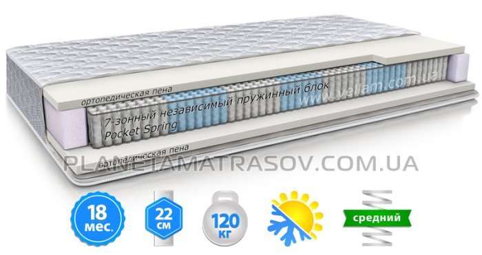 - Тип пружинного блоку: "Pocket Spring" 7 зон твердості