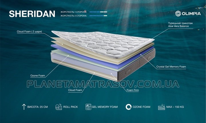 - Olimpia Sheridan має багатошарову структуру, що забезпечує ідеальний баланс м’якості та підтримки: