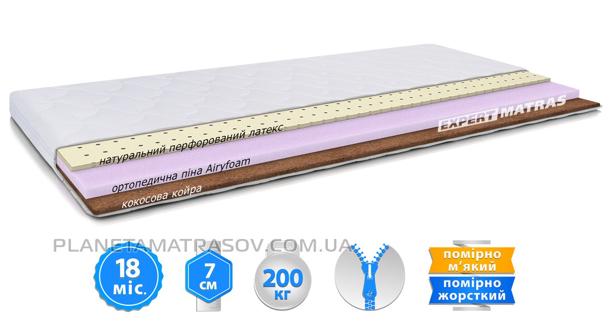 Матрац топер COCOS-LATEX / КОКОС-ЛАТЕКС трикотаж 140х200