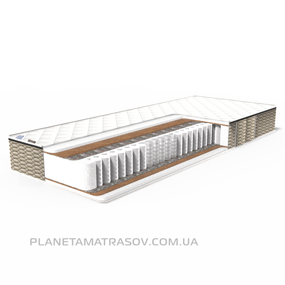 Ортопедичний матрац із симетричною жорсткістю сторін. Латексована кокосова койра з двох сторін додає матрацу жорсткість, розподіляє навантаження по поверхні і забезпечує максимально комфортну підтримку тіла. Модель має підвищену міцність, стійка до високих навантажень, а піна високої щільності Airfoam доповнить ортопедичний ефект.