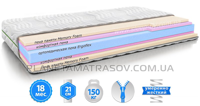 - Тип пружинного блока: ортопедическая пена Ergoflex