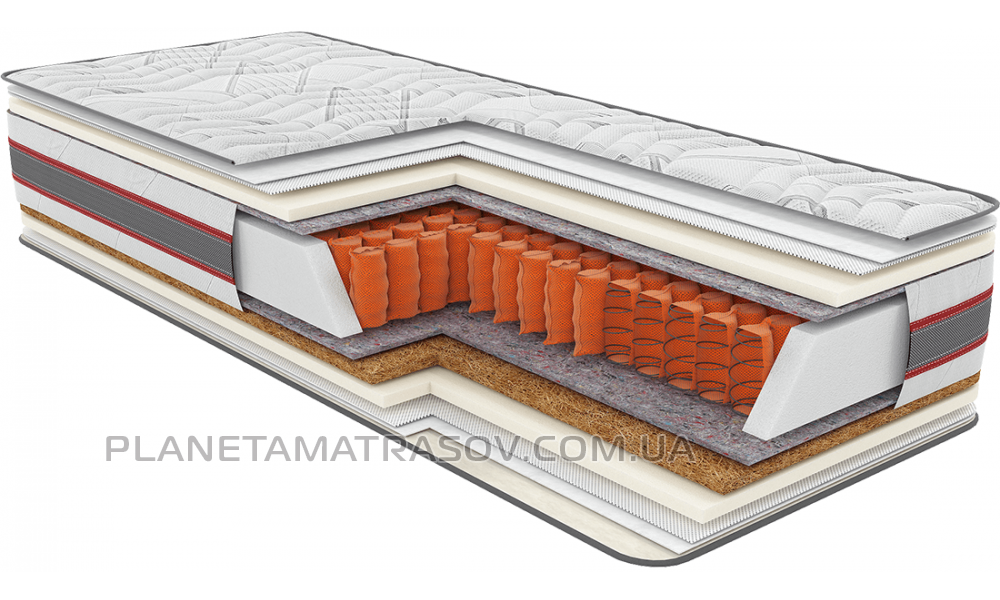 Кокосовая койра – экологически чистый, гипоаллергенный, воздухопроницаемый материал. За счет латексирования материал приобрел упругость, эластичность и устойчивость к деформациям. Латекс позволяет блоку койры не крошиться и не рассыпаться. Если вы ищете матрас с повышенной жесткостью, но вто же время упругий, обратите внимание на модель с койрой.