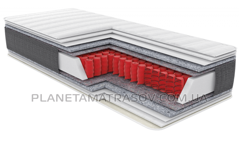 Усиленный блок независимых пружин из проволоки большего диаметра. Такое решение позволило увеличить поддерживающую способность матраса и создать комфортные условия для людей с повышенной массой тела.