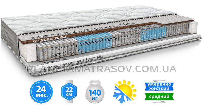 Отличный матрац! До этого детям брали на 2 кровати эту модель. Решили с супругой себе заменить. 2 месяца назад просмотрел цены в интернет магазинах. Сейчас решили наконецто приобрести и обнаружили, что везде цена на наш размер матраца этой модели поднялась на 5000грн. Слава Богу Планета Матрацов еще продает по старой цене!!! Рекомендую!!!!Плюсы: Комфортный сон, отличная поддержка позвоночникаМинусы: нету