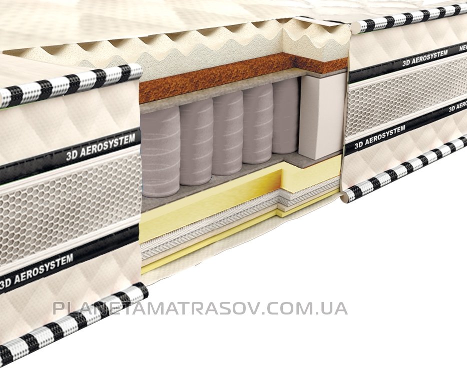 Новая модель матраса на пружинах независимого типа, имеет дорогую трикотажную ткань бельгийского производства «VINTAGE», которая обладает высочайшим комфортом и терморегулирующими свойствами. Основным достоинством модели является сочетание натурального латекса, кокосовой койры и вязкоэластичного материала «Memory». Блок независимых пружин POCKET SPRING, в котором каждая пружина несет свою нагрузку отдельно от соседней, идеально обеспечивает анатомический и ортопедический эффект матраса.