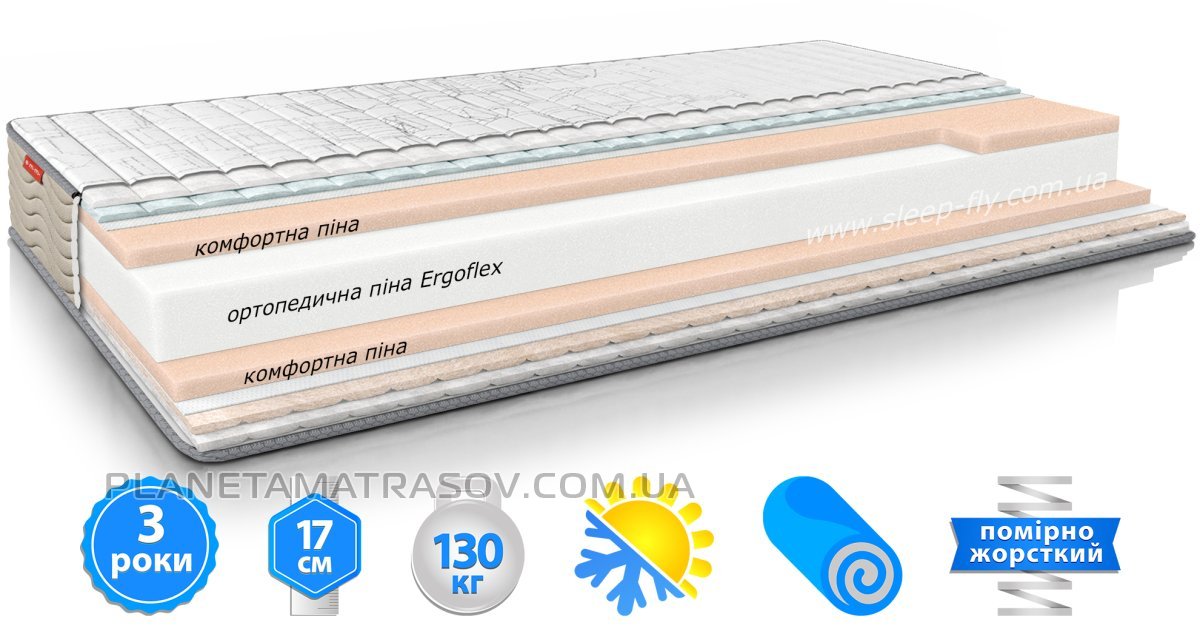 - Тип пружинного блока: ортопедическая пена Ergoflex