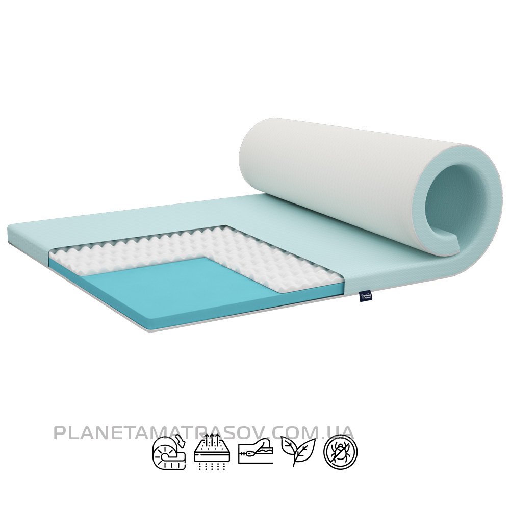 - StayFix (антиковзна мембрана) - забезпечує впевнену фіксацію топпера на матраці, дивані або будь якій поверхні протягом усієї ночі. Мікротекстурована поверхня формує тисячі мікроточок зчеплення, завдяки чому топпер не зсувається навіть під час активних поворотів. Жодних липких шарів — чиста, акуратна посадка та рівна поверхня до ранку. Мембрана зберігає еластичність і ефективність упродовж тривалого використання та сумісна з більшістю тканин матраців.