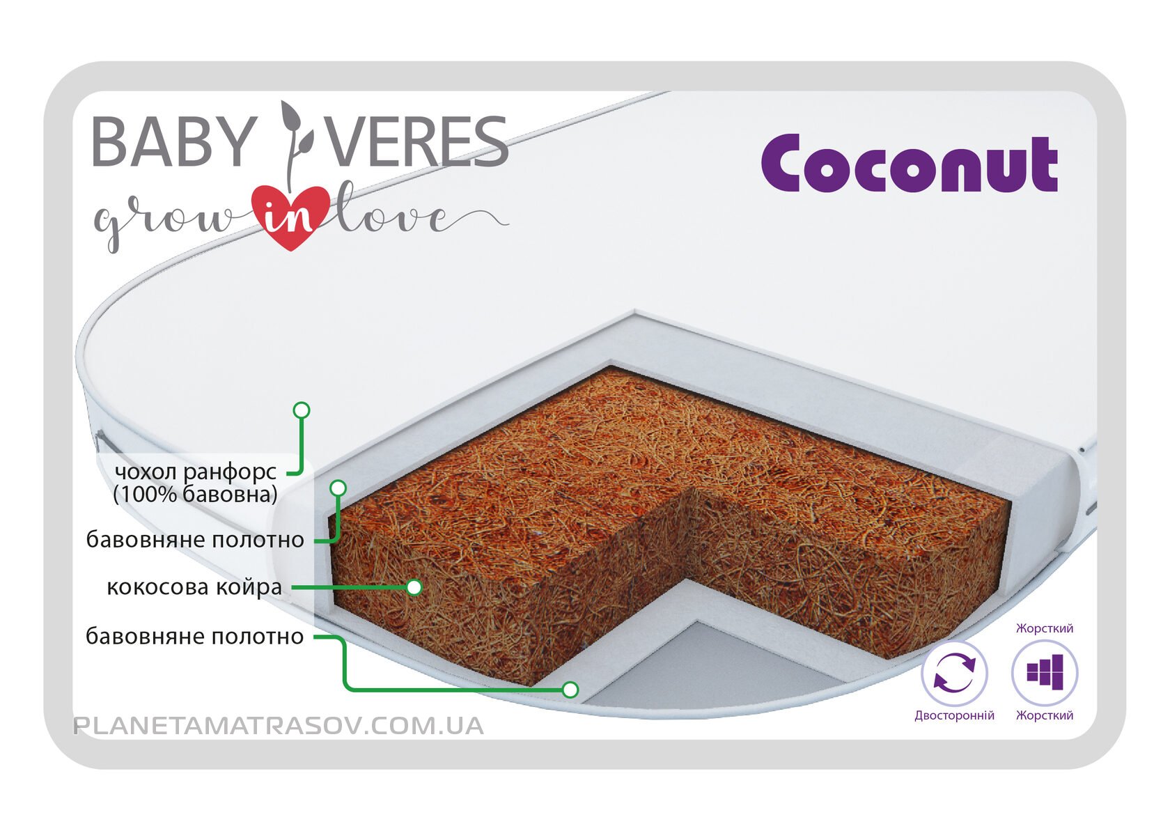 Coconut жорсткий дитячий матрас на основі кокосової койри . Наповнювач ізольований нетканим волокном.